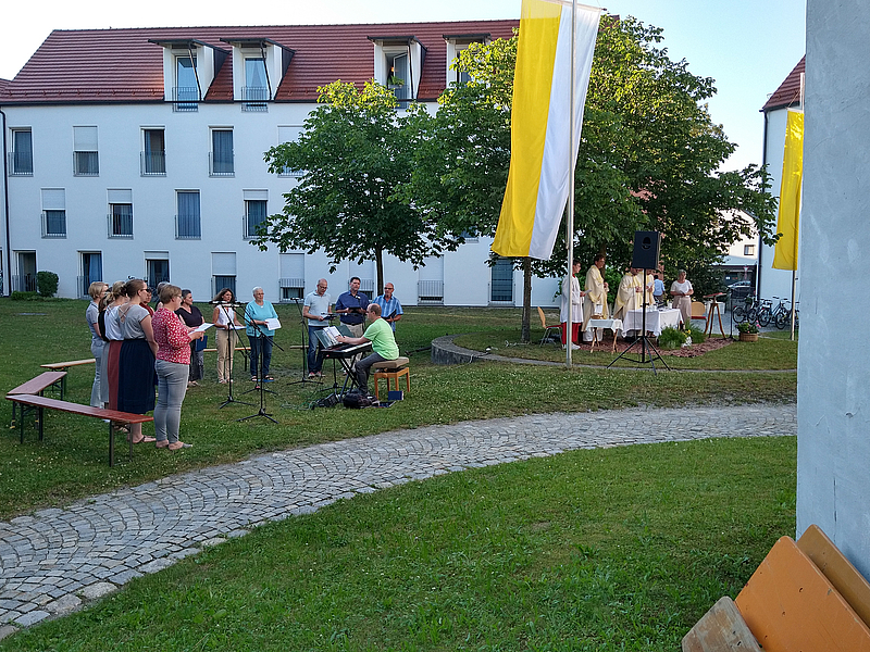 Zum ersten Mal wurde in der Pfarrei St. Martin in Deggendorf das Patrozinium der Schachinger Kirche im Freien gehalten. Am Vorabend des 24. Juni, dem Gedenktag des Johannes des Täufers konnten Gläubige vor der Schachinger Kirche , die Johannes gewidmet ist, bei schönem Sommerwetter eine Messe feiern. Stadtpfarrer Franz Reitinger zelebrierte den Gottesdienst, den Kirchenmusiker Conrad Jocher mit dem Kirchenchor der Pfarrei musikalisch gestaltete. Pater Gregor Schuller betonte in seiner Predigt die Sonderstellung des Täufers, zum einen über den Termin seines Gedenktages, den 24.Juni der genau ein halbes Jahr vor den Heiligen Abend liegt, sowie über die Tatsache, das von nur drei Personen der Heiligen Schrift der Geburtstag gefeiert wird, nämlich von Jesus, seiner Mutter Maria und eben den, des Johannes des Täufers
