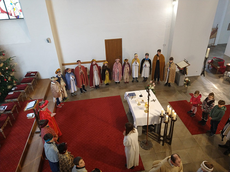 Den Abschluss der Aktion bildete der traditionelle Familiengottesdienst am 06. Januar mit Sternsinger Einholung, an dem alle Sternsinger der Pfarrei teilnahmen und ministrierten.