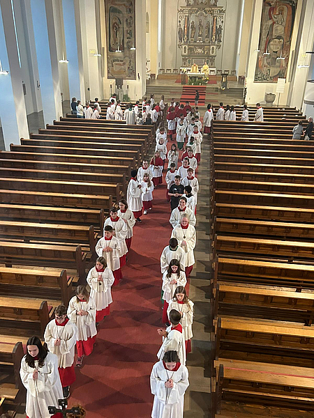 Doch es waren nicht nur zwei oder drei am Dekanatministrantentag. Mehr als 80 Ministranten kamen am Freitag, den 23.06.23 in unsere Pfarrei. Abordnungen aus den beiden Pfarreien in Deggendorf, Pfarrgemeinschaft Michaelsbuch-Stephansposching, Pfarrei Plattling und der Pfarrei Metten wurden von den beiden Organisatoren Gemeindereferentin Verena Grillmayer (Deggendorf St. Martin) und Kaplan P. Gregor (Michaelsbuch/ Stephansposching) auch im Namen des Dekans Josef Geismar begrüßt. Nach einem kurzen Sortieren, was bei einer solch großer Schar gar nicht so leicht ist, teilten sich die Abordnungen in Untergruppen auf, um alle gegeneinander in einer Olympiade anzutreten. Weihwasserlauf, Minilaufgewand, Tabu, Kohle stapeln, Pictionary, um bloß einen kleinen Teil zu nennen, waren die Disziplinen. Um das Ergebnis vorauszunehmen, könnte man sagen, dass die „Hausherren“ Gastfreundschaft walten ließen und sich eher im letzten Drittel der Siegerleiste verorteten. Neidlos muss man die Leistung der Pfarreigemeinschaft Michaelsbuch/ Stephansposching anerkennen, die mit ihren drei Gruppen, die drei ersten Plätze belegten. Um sich nach dieser turbulenten aber von großer Freude und Spaß geprägten Olympiade wieder auf das Geschäft zu konzentrieren, das Ministranten am besten können, feierte man dann noch eine große Messe. Besonders festlich wurde es dadurch, dass mit dem Dekan eben diese über 80 Ministranten einzogen. Ein Moment, der zeigte, dass der Dienst am Altar immer noch floriert und sich der einzelne Ministrant in einer großen Gemeinschaft wähnen darf. Nachdem man am Ende zum höchst feierlichen „Te deum“ wieder ausgezogen war, trafen sich nochmal alle Dekanats-Ministranten im Pfarrsaal, um bei einer Würstlsemmel und verbindenden Gesprächen den Tag ausklingen zu lassen.